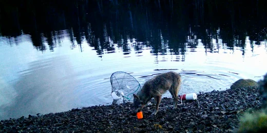 Video shows wild wolf appearing to use a tool to steal fish
